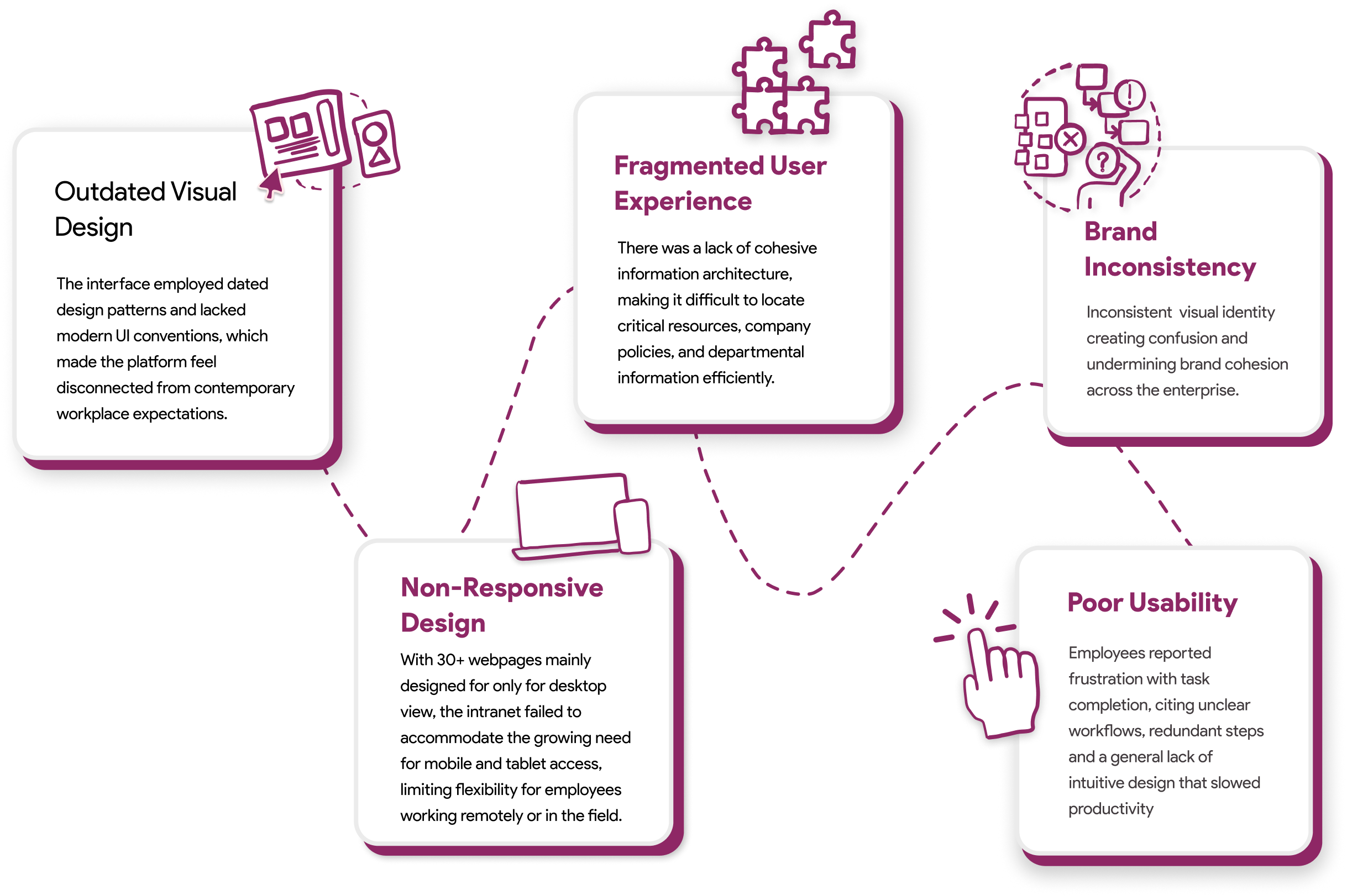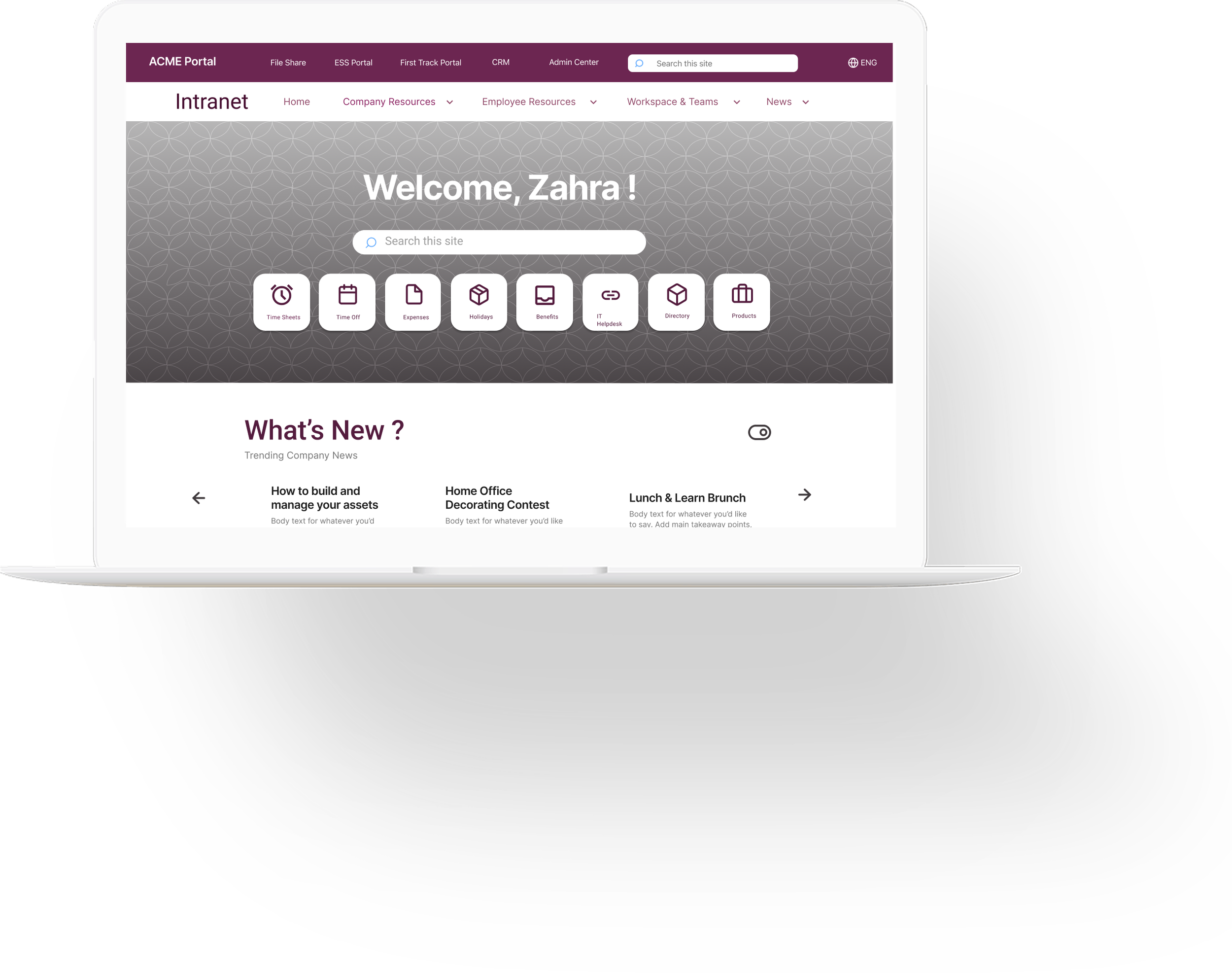 ACME’s Intranet follows outdated UI patterns, with unclear workflows, redundant steps and lack of intuitive design that lowers productivity