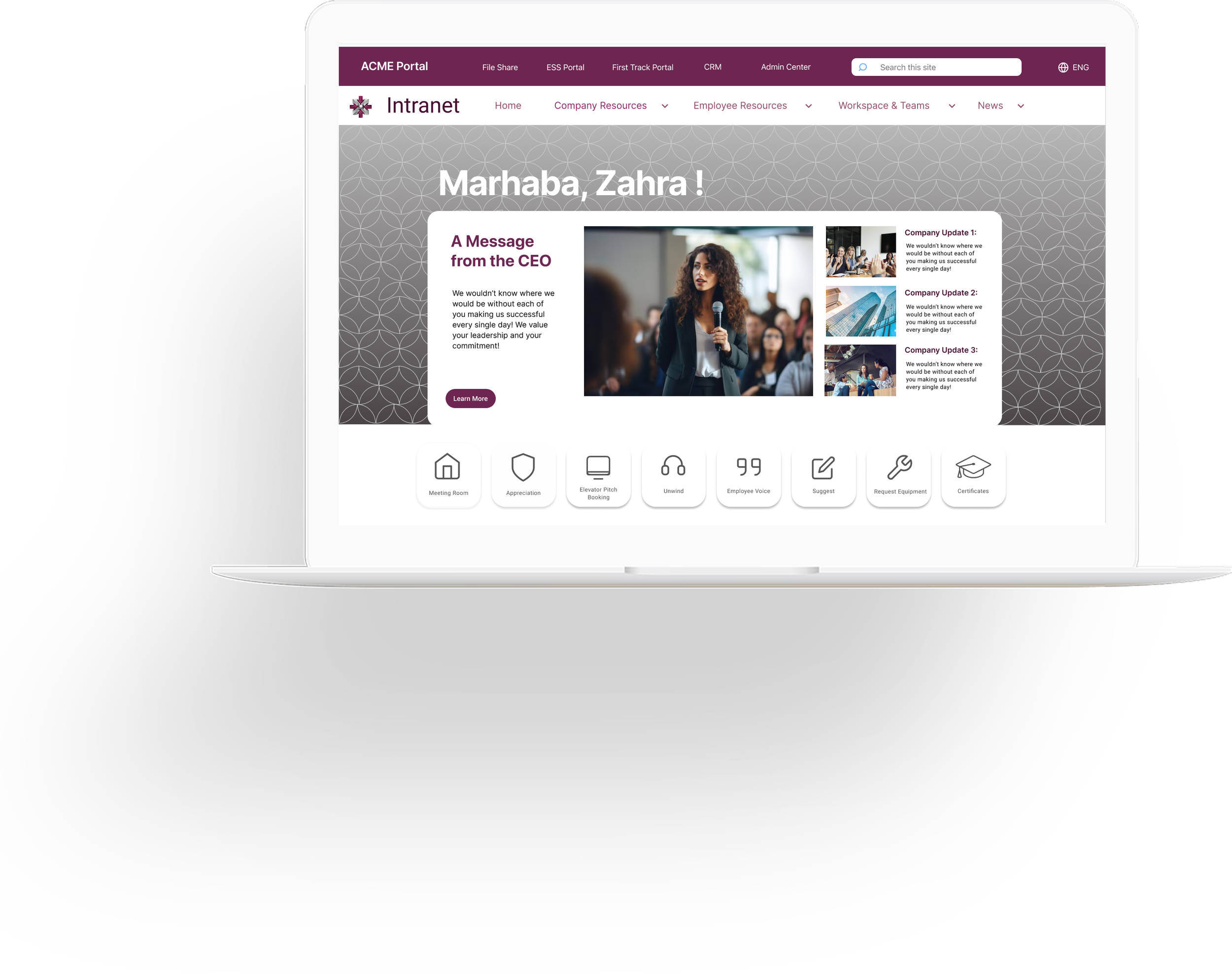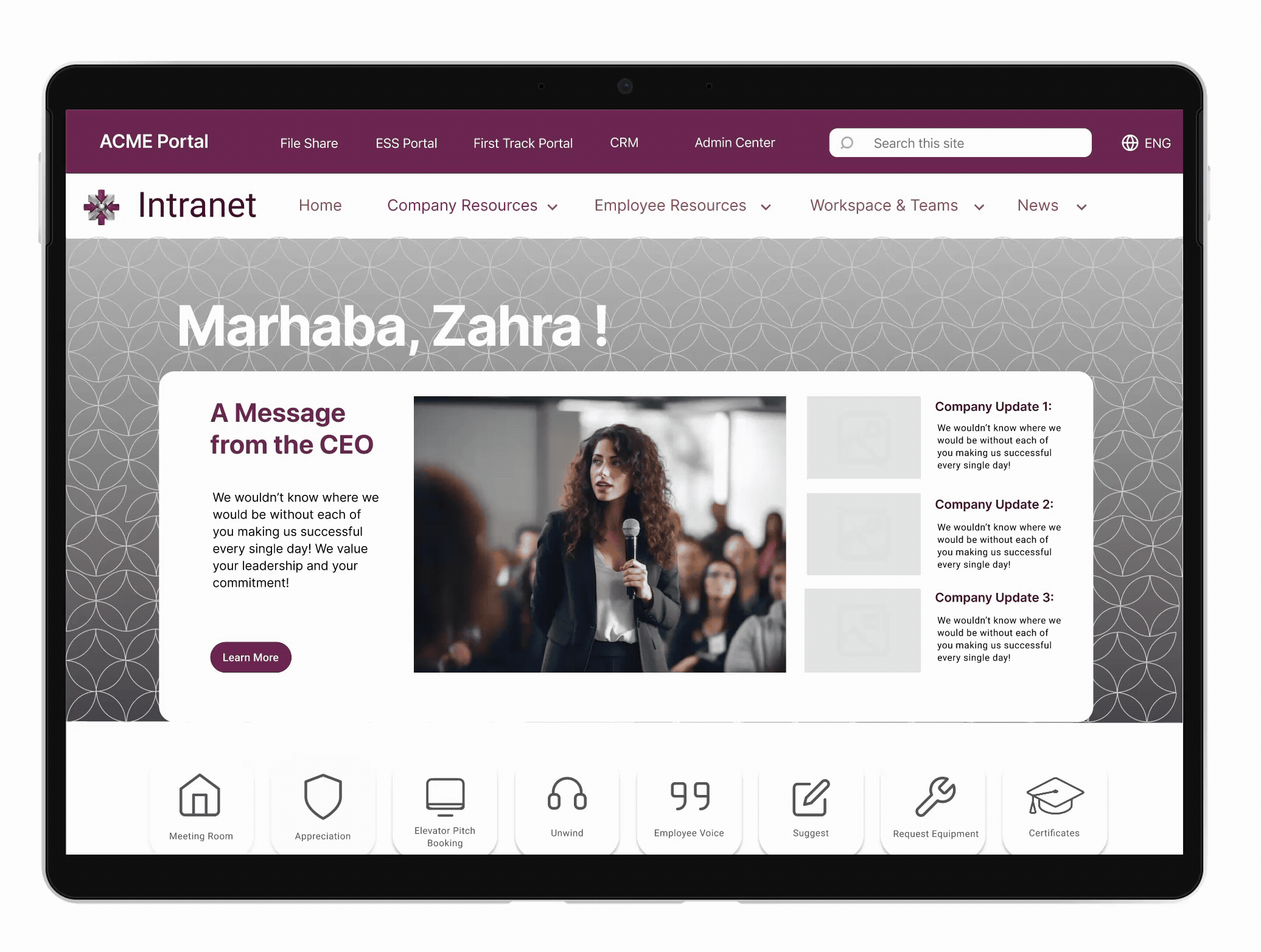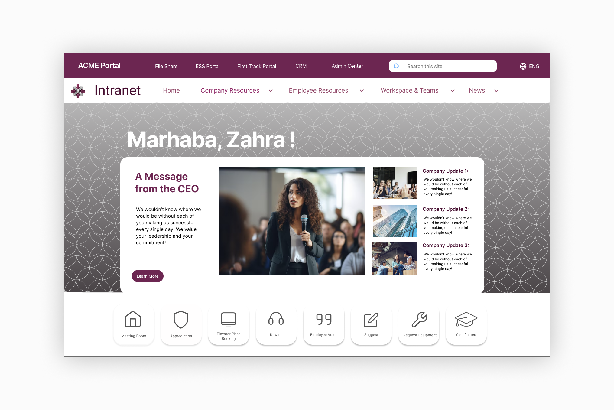 Spearheaded the brand redesign of ACME’s Intranet, reducing employee task friction by 40% and transcending the platform into interactive community where employees contribute, work and thrive. Design will be shipped by the end of 2025.